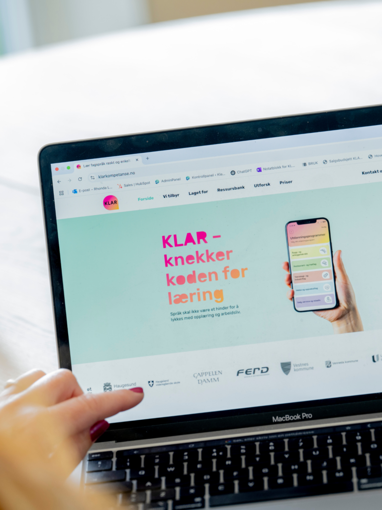 Vi har kjøpt KLAR app til alle elever på yrkesfag. Den er veldig nyttig, både for å lære fagbegrep på norsk med morsmålsstøtte, men også for å lære engelske fagbegrep. KLAR ressursbank, med ferdige undervisningsopplegg, er også verdifulle for lærerne. Siden alle lærerne og elevene bruker appen, er det mulig å samarbeide tverrfaglig eller på tvers av skoler.